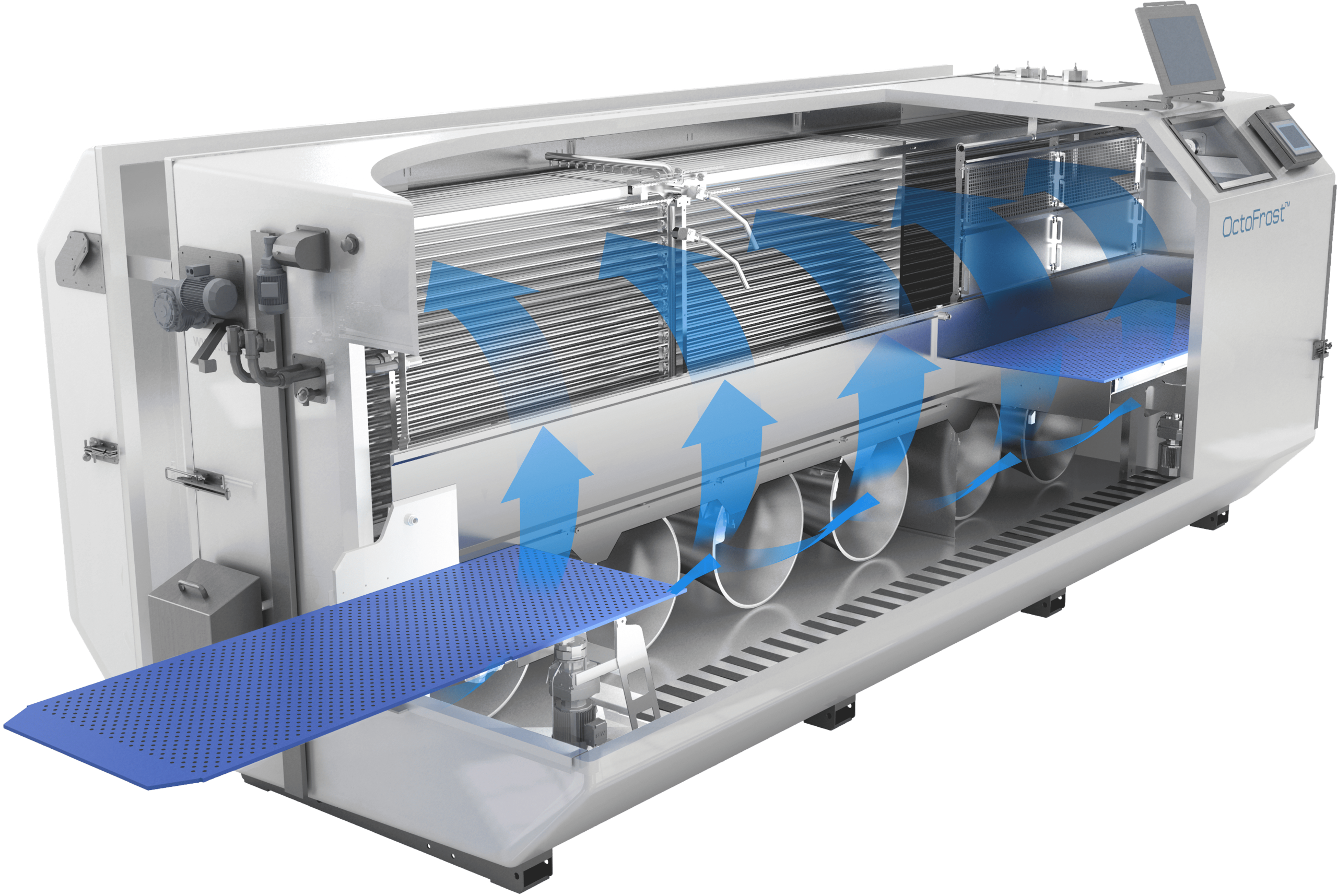 Il surgelatore a impatto OctoFrost è una soluzione eccellente per surgelare in crosta i prodotti alimentari morbidi prima della liofilizzazione, garantendo che mantengano la loro forma e struttura durante tutto il processo. Surgelando rapidamente lo strato esterno, la nostra tecnologia fornisce una superficie protettiva solida che impedisce la deformazione e l’attaccamento durante la manipolazione e la sublimazione. Questo è particolarmente vantaggioso per i prodotti delicati e morbidi, come le porzioni di cibo per animali domestici simili a polpette o altri alimenti ad alto contenuto di umidità. Grazie a un controllo preciso del flusso d’aria e a un surgelamento efficiente, OctoFrost aiuta a ottimizzare i risultati della liofilizzazione preservando l’integrità e la qualità del prodotto finale.