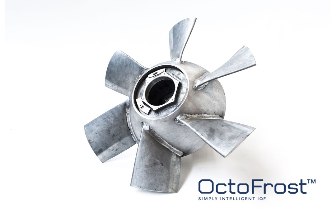 The major types of axial fans are vane axial, tube axial and propeller. Innovative Iqf equipment and technologies such as the OctoFrost™ uses vane axial fans because the design of this fans ensures better energy efficiency. The vane axial fans have a wheel inside a cylindrical housing, with close clearance between the blade and the housing, to improve the airflow efficiency. Also, the vane axial has guide vanes that direct and straighten the airflow, thus improving the overall efficiency. Vane axial fans are usually the most energy efficient fans.