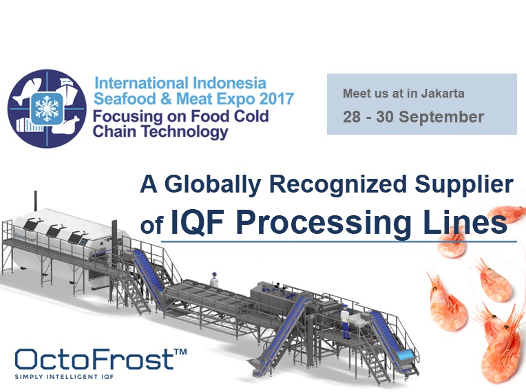 As OctoFrost Group has become the supplier of complete IQF processing line, we invite you to learn more about the innovative processing equipment OctoFrost offers along with the benefits of having a single supplier responsible for your whole processing line, at the International Indonesia Seafood and Meat Expo 2017, which is taking place at JI EXPO Kemayoran, Jakarta during 28 to 30 September, 2017.