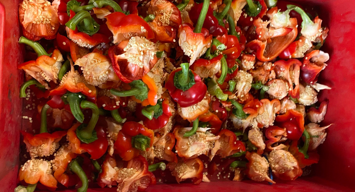 I peperoni richiedono un posizionamento stabile per garantire una rimozione pulita del torsolo e una segmentazione uniforme. Il sistema di detorsolatura dei peperoni utilizza tasche appositamente progettate che mantengono ogni prodotto correttamente orientato durante tutto il processo.